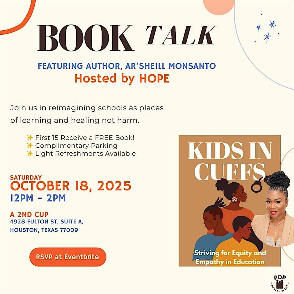 On October 18, come hear Board President Ar’Sheill Monsanto speak on restorative justice and her book, Kids in Cuffs!