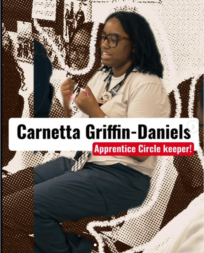 Already an experienced Circle keeper, she is now fully apprenticed after having gone through the fall cohort in circles for community building. She led a beautiful training for educators who work with students who are often sent to in school suspension. We set goals, and role played the difficulties that can arise in circle. Sheās a true leader in the movement.